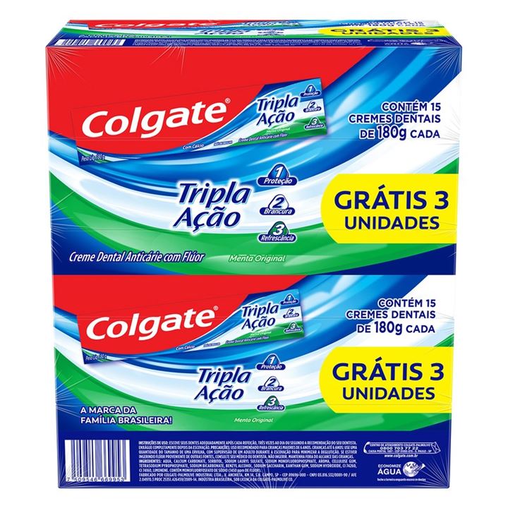 Creme Dental Colgate Tripla Ação 180g Leve 15 Pague 12