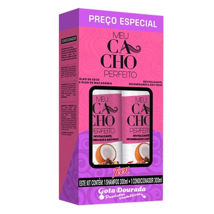 Kit Gota Dourada Shampoo + Condicionador Cachos Teen Oleo De Coco E Macadamia 600ml