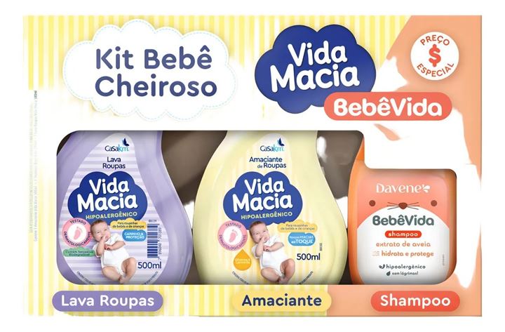 Kit Lava Roupas E Amaciante Vida Macia Glicerina E Doce