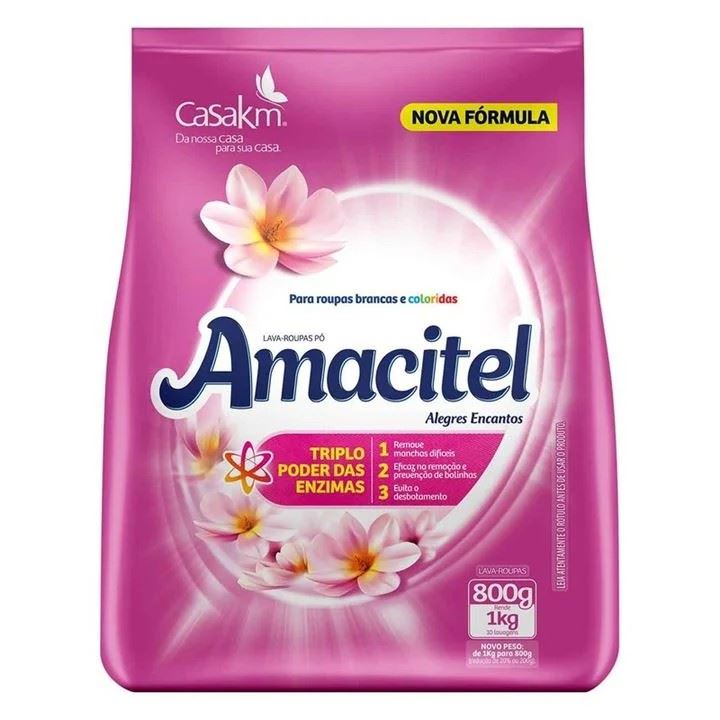 Lava Roupas Em Pó Amacitel Alegria Encantos 800g
