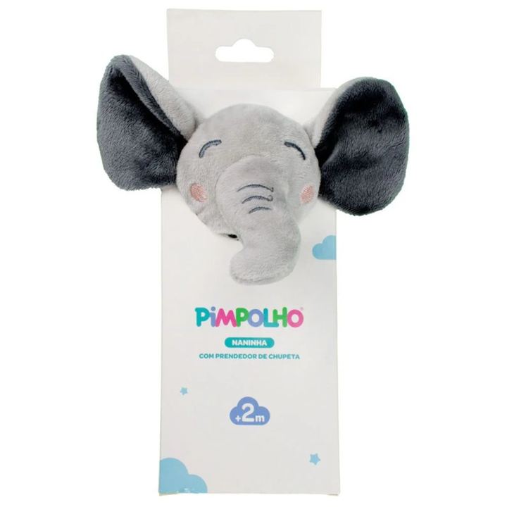 Naninha com Prendedor de Chupeta Elefante Cinza