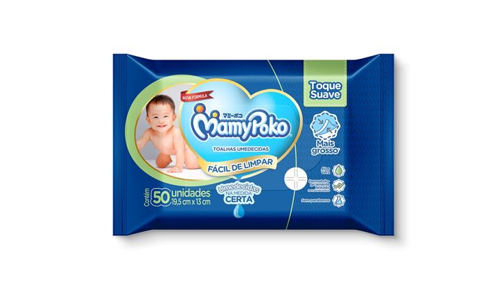 Toalha Umedecida MamyPoko Toque Suave com 50 unidades